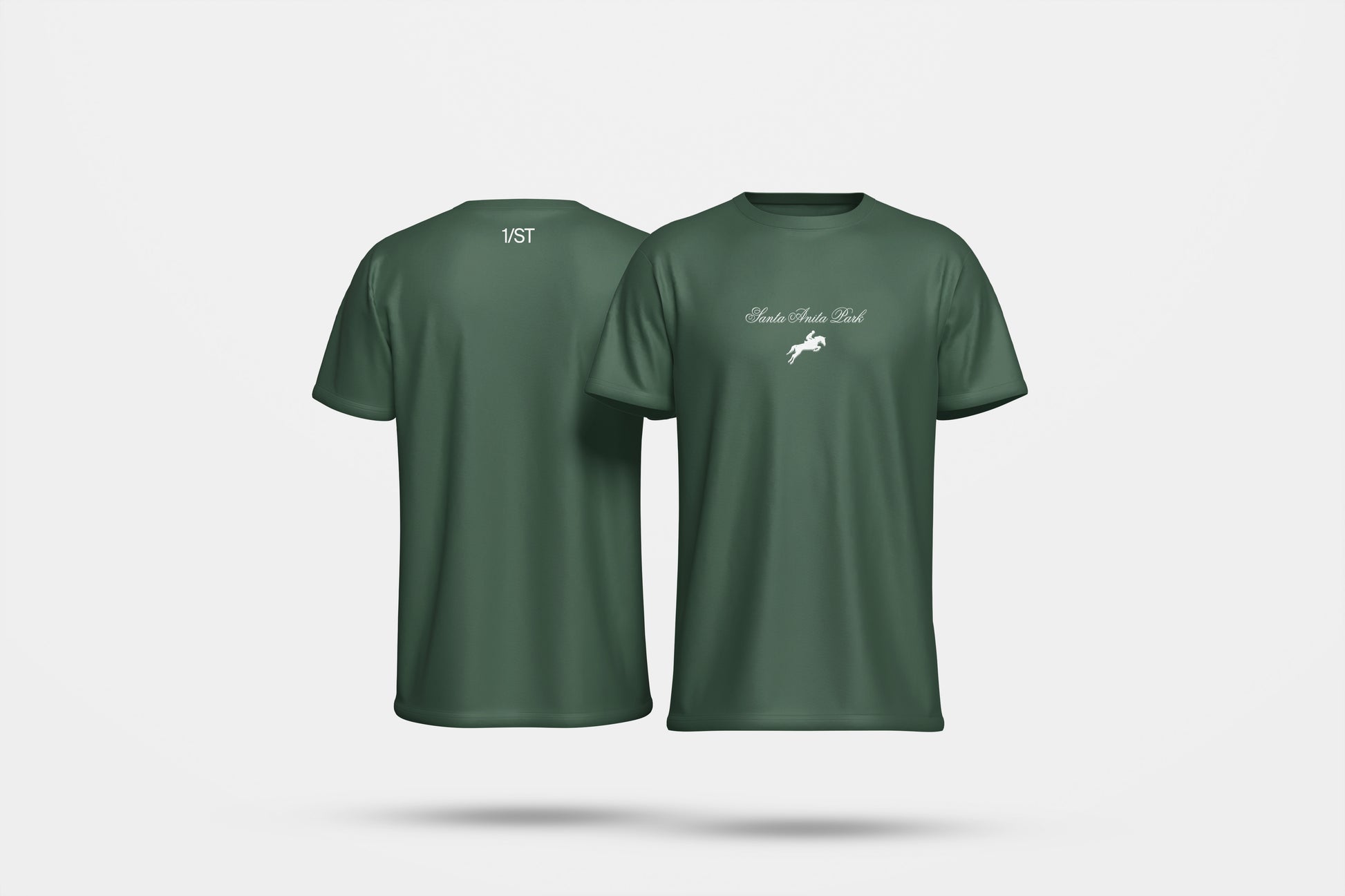 Santa Anita Park crewneck t-shirt made of 100% USA cotton. 6.5oz cotton with 10)% shrink free garment dye. Embroidered logo on chest and back neck. Knitted, cut, sewn, and dyed in Los Angeles, California.
